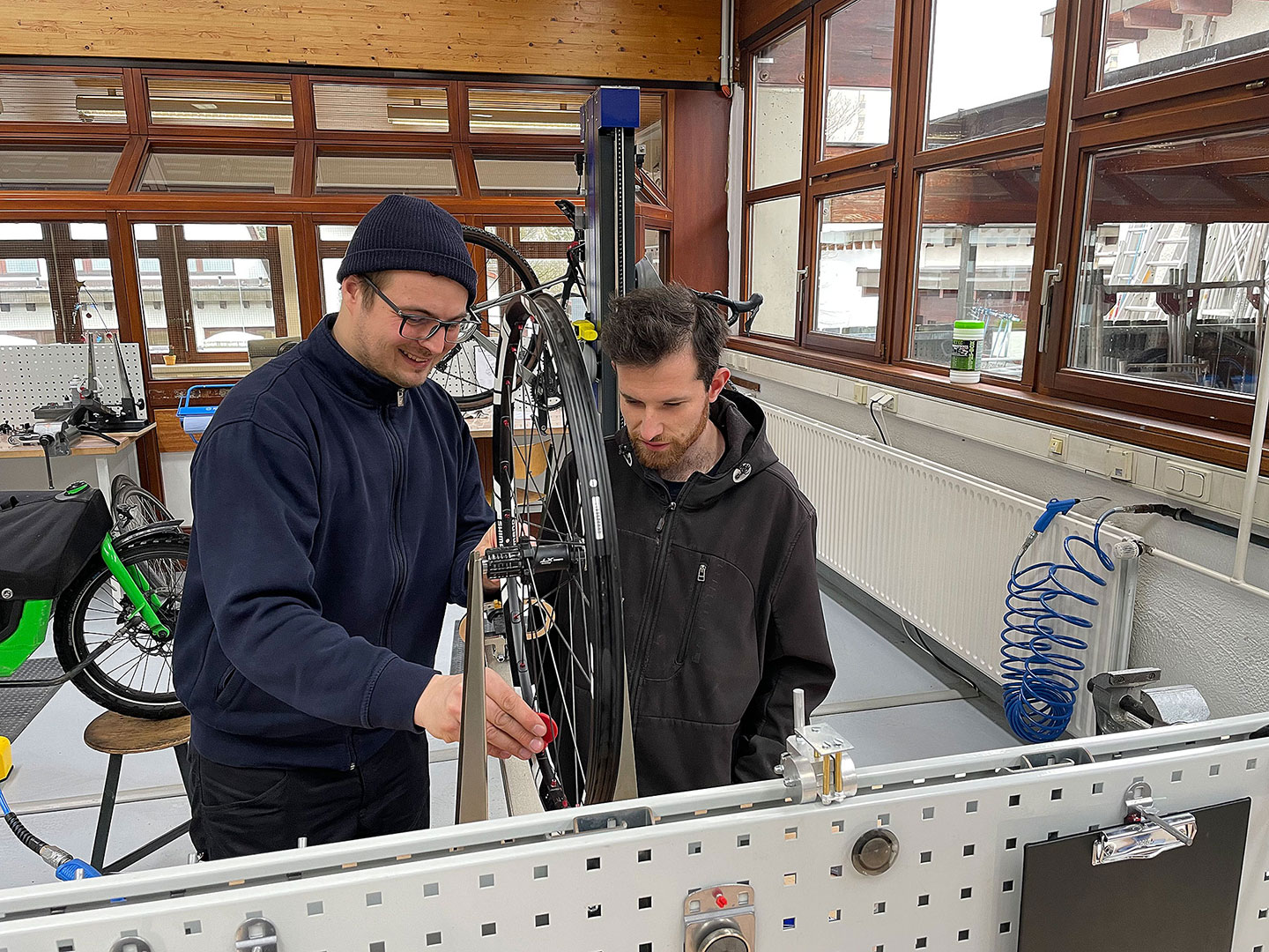 In der Fahrradwerkstatt unseres Berufsbildungswerk Winnenden gibt es eine hochwertige Fahrradmonteur*innen-Ausbildung für Jugendliche mit Förderbedarf. Unsere Ausbilder sind Zweirradmechaniker-Meister und kümmern sich zudem mit ihrem Team um alle Anliegen rund ums (E-) Bike.